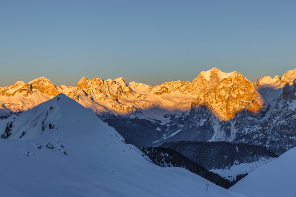 - 6:20 a.m. – Welcome to Sella Brunech! Breathe in the crisp morning air and look around you: the Sella, the Colac and the Marmolada—every peak comes alive with the first rays of sunshine. The instructors of the Canazei Marmolada Ski School will help you recognise the mountains, sharing stories and fascinating facts.